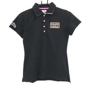 【美品】サマンサタバサNo.7 半袖ポロシャツ 黒 襟裏ピンク ロゴワッペン レディース 38(M) ゴルフウェア Samantha Thavasa