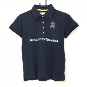 サマンサタバサUNDER25 半袖ポロシャツ ネイビー 襟裏ギンガムチェック ベア刺しゅう レディース M ゴルフウェア Samantha Thavasa