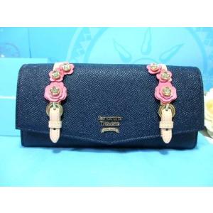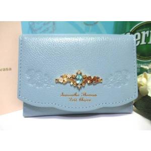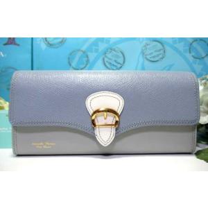 送料無料 サマンサタバサ ロゴ入 本牛革 フロント バックル バイカラー かぶせ 長財布 ダルブルー 未使用 タグ 箱付 包装無料 開運 金運up 春財布 プチチョイス