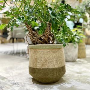 CLOVER(クローバー) シーグラスバスケット ウィズストリング ナチュラル&ダークグリーン