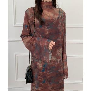 ワンピース インナーキャミ付きメロウシーズルメッシュシアーロングワンピース