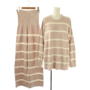 ジェラートピケ gelato pique ホットスムーズィーボーダープルオーバー パンツ セットアップ ルームウェア ニット F スモークピンク