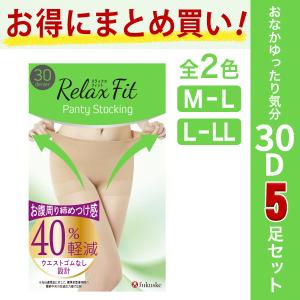 ストッキング 黒 黒タイツ 肌色 パンスト ベージュ レディース おなかゆったり気分 5足組 30デニール 無地 シアータイツ 517q1345 フクスケ fukuske 福助 公式