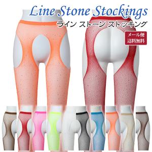 【メール便】 ライン ストーン ストッキング ラメ グリッター 網 フィッシュネット サスペンダー 穴あき セクシー コスプレ 衣装 勝負下着 全10色 送料無料