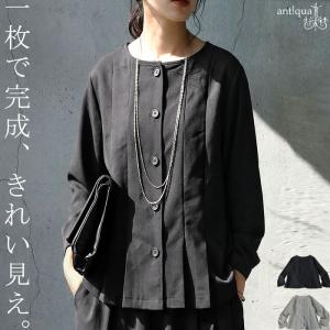 ノーカラー タック トップス レディース 羽織り 送料無料・50ptメール便可