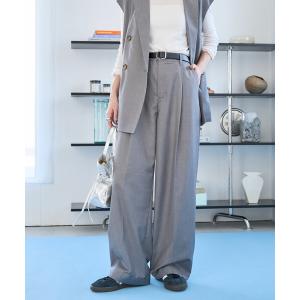 パンツ 「3サイズ展開」「イージーケア」 ウール混タックギャザーストレートパンツ レディース