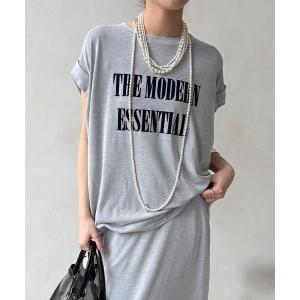 tシャツ 「セットアップ可能」フロッキー肩タックプリントTEE レディース