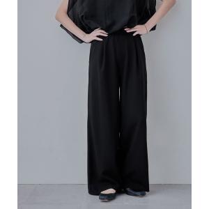スラックス パンツ ストレッチタックワイドパンツ レディース