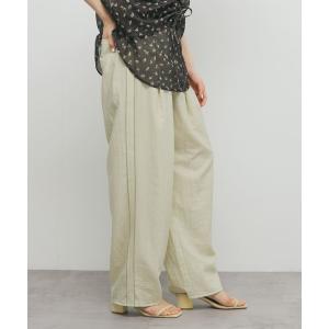 スラックス パンツ リネンレーヨンツイル タックワイドパンツ レディース