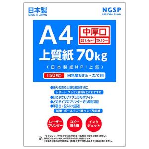 【中厚口】A4 上質紙 70kg 国産(日本製紙 NPI上質) (150枚)