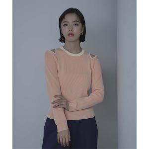ニット セーター ショルダーカットバイカラーリブニット レディース