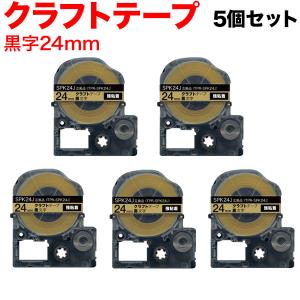 テプラテープ 24mm 互換 テープ テプラプロ テプラ PRO SPK24J 強粘着 クラフト ベージュ ラベル 黒 文字 5個セット キングジム 用
