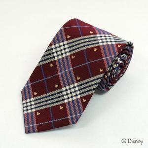 DISNEY キャラクター ネクタイ ディズニー 正規ライセンス ミッキーマウスネクタイ チェック柄 赤 ビジネス プレゼント 父の日