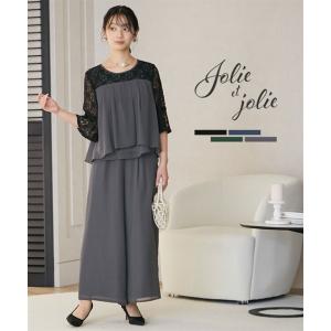 ドレス パーティー レディース レース切替 ブラウス +ワイド パンツ セットアップ 結婚式 二次会 お呼ばれ セミフォーマル対応 S/M/L/LL/3L ニッセン nissen