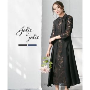 ドレス パーティー 大きいサイズ レディース スタンドカラー フロント レース デザイン ワンピース 二次会 お呼ばれ対応 フォーマル LL/3L ニッセン nissen