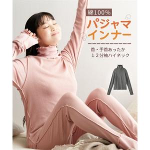 パジャマ レディース 綿100% インナー 首 手首あったか 12分袖 ハイネック 春 秋 冬 ルームウェア 部屋着 女性 | M/L | ニッセン nissen