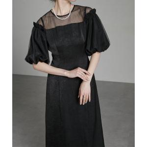 ドレス ヴィンテージ風サテンボリュームスリーブワンピースドレス