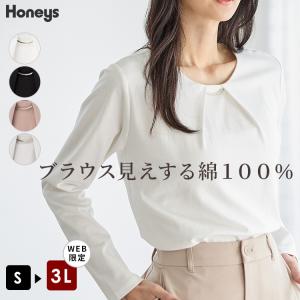 トップス カットソー 長袖 大きいサイズ オフィス きれいめ クルーネック 無地 レディース Honeys ハニーズ メタルパーツ付トップス