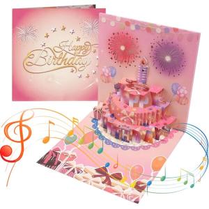 誕生日カード メロディ ライト付き ケーキ 3D 立体 バースデー カード グリーティングカード ポ