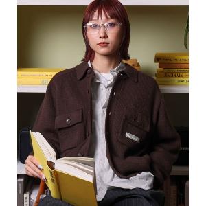 カーディガン 「FFEIN(フェイン)」ネームツキビックポケットニットジャケット / ジャケット ニット ビスネーム シンプル ポケット ブラウン