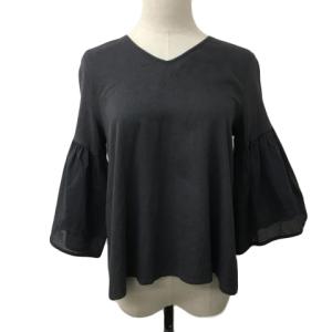ビーミングバイビームス ブラウス カットソー プルオーバー Vネック 切替 リボン 無地 リネン フレアスリーブ 七分袖 S グレー レディース