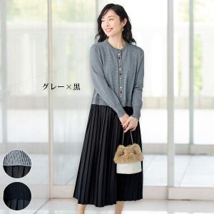 ワンピース きれいめ おしゃれ 春 秋冬 ミセス シニア ファッション 40代 50代 60代 70代 80代 カラフル多ボタン使いドッキングワンピース