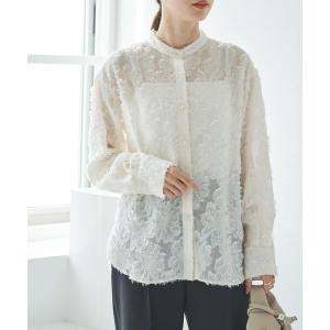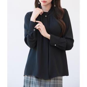 ブラウス シャツ SHIPS any:「手洗い可能」シアー フリル バンドカラー パフ シャツ ブラウス レディース