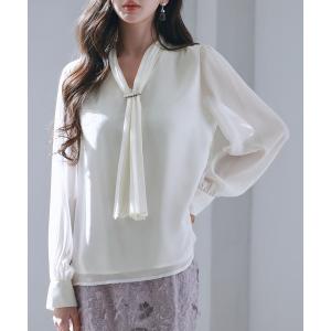 ブラウス シャツ パウダーサテン2WAYブラウス レディース