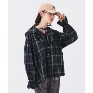 ブラウス シャツ 「1/15再値下げ」チェック フリルカラー シャツ レディース