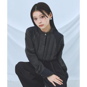 ブラウス シャツ 「洗濯機可能」ピンタック バンド カラー シャツ レディース