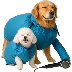 ペット ドライヤー 速乾 乾燥 袋 トリミング ブロワー グルーミング 用品 犬 猫 シャンプー ケア 時短 グッズ (ブルー, XL)