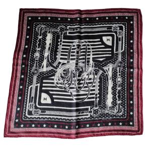 良品 HERMES エルメス カレ55 カシミア×シルク COACHING スカーフ ブラック×ボルドー レディース 古着 中古
