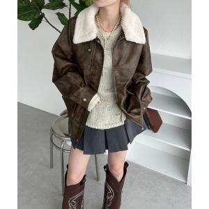 ブルゾン アウター フェイクファー襟付き2way合皮ブルゾン レディース