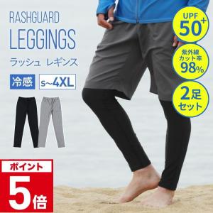 ラッシュガード レギンス メンズ 2足セット 夏用 冷感 UPF50+ スポーツタイツ 男性用 10分丈 UVカット 水着 耐塩素 体型カバー ブラック 黒 グレーPR-4500
