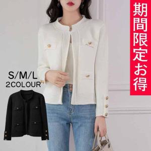 フォーマルニットジャケットレディース入学式卒業式入園卒園式アウターノーカラー 長袖ジャケットオフィスママスーツ結婚式 母 ママ 卒業式 スーツ 母白 黒春冬