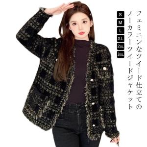 ツイードジャケット ノーカラージャケット レディース ジャケット 春 秋 冬 アウター 長袖 羽織り ママスーツ 大きいサイズ フォーマル 通勤 お