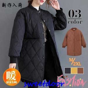 キルティングコート レディース 中綿コート ロング ブルゾン 中綿ジャンパー アウター 軽い ゆったり 無地 あったか 暖かい 防寒 おしゃれ 冬