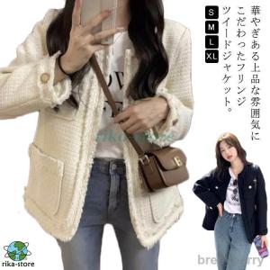 ツイードジャケット フリンジ アウター 羽織り ノーカラー ジャケット かカジュアル フォーマル ママスーツ 長袖 ツイードフリンジジャケット レモニ