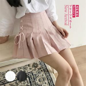 スカート プリーツスカート サイトリボン付き 可愛い ミニスカート 無地 シンプル 通学 レディース おしゃれ 送料無料