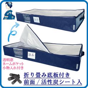 着物収納ケース 通気性の良い 厚手不織布製 前面活性炭シート入り 着物約3枚用 底板 持ち手 透明窓 小物入れ 名前・防虫剤ポケット 付き 大きく開くファスナー