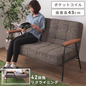 ソファ 2人掛け おしゃれ リクライニング ポケットコイル シンプル 肘付き アーム付き スチール ヴィンテージ 背もたれ ゆったり インダストリアル クッション