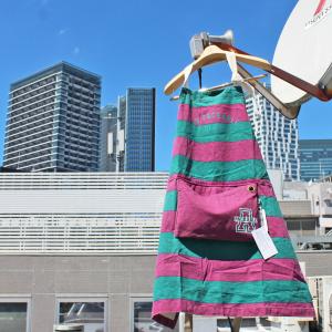 AND PACKABLE PACKABLE APRON パッカブル エプロン WASHABLE COTTON PRINT APRON プリントエプロン Rugby Purple ネコポス便200円対応