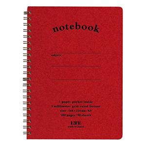 ライフ ノート ポケット付 方眼 赤 A5 N190C