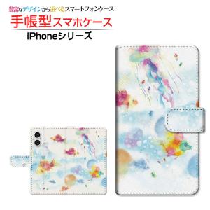 スマホケース iPhone 17 クリアケース付 手帳型 ケース カメラ穴対応 F:chocalo デザイン 池田 優 海遊び 海 魚 イラスト 水色 クラゲ