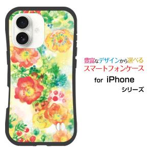 スマホケース iPhone 17 耐衝撃 ハイブリッドケース ストラップホール付 Flowers dance F:chocalo デザイン 花 りす イラスト 動物 オレンジ