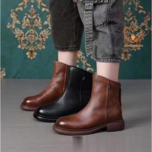 ブーツ レディース ショートブーツ 本革 ブーツ 黒ブーツ ローヒール ペタンコ靴 厚底 ヒール3.5cm 美脚 秋 冬 柔らか 軽量