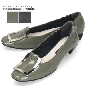 パンプス ローヒール フラットパンプス 黒 ラボキゴシ ワークス 12763 ブラック グレー 太ヒール レディース 靴 日本製 RABOKIGOSHI works