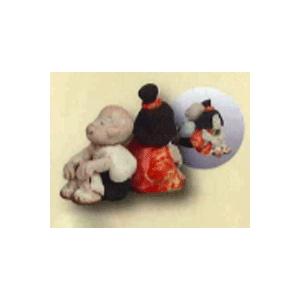 (和雑貨)手作りの陶人形 一休さんとさよちゃん背中合わせ