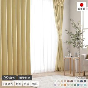 形状記憶加工 1級遮光 防炎 ドレープカーテン 単品 幅100×丈235cm 2枚入 ペールイエロー 洗える 無地 日本製 受注生産