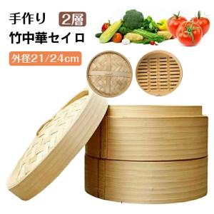 中華せいろ 蒸し器 調理器具 21/24cm 蒸籠 深型 IH対応 天然竹 蒸篭せいろ 中華セイロ 小籠包 蒸し器 便利グッズ 蒸し料理 本体+蓋 本体2個 竹中華セイロ